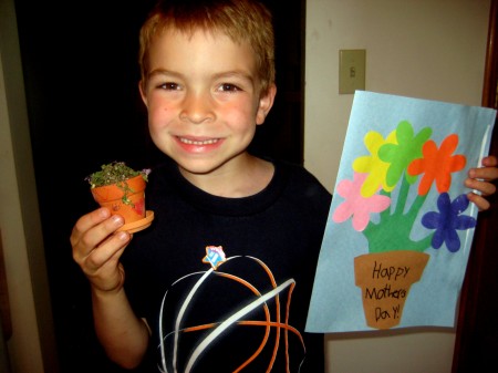 When Owen came out of school today he also had an amazing little flower pot that he made for me along with a beautiful card.