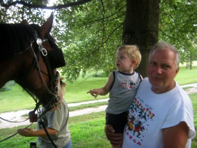 The new neighbors from up the road raise Clydesdale horses and have a replica of a Conestoga wagon. They were giving rides all afternoon.