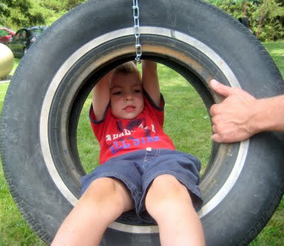 They have just put up a playground set that has 4 levels. Awhile back, they made a giant sandbox to play in. The day before their 4th of July celebration they put up these two swings, and they have plans to finish a cute little playhouse to put up as well.